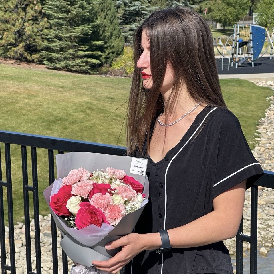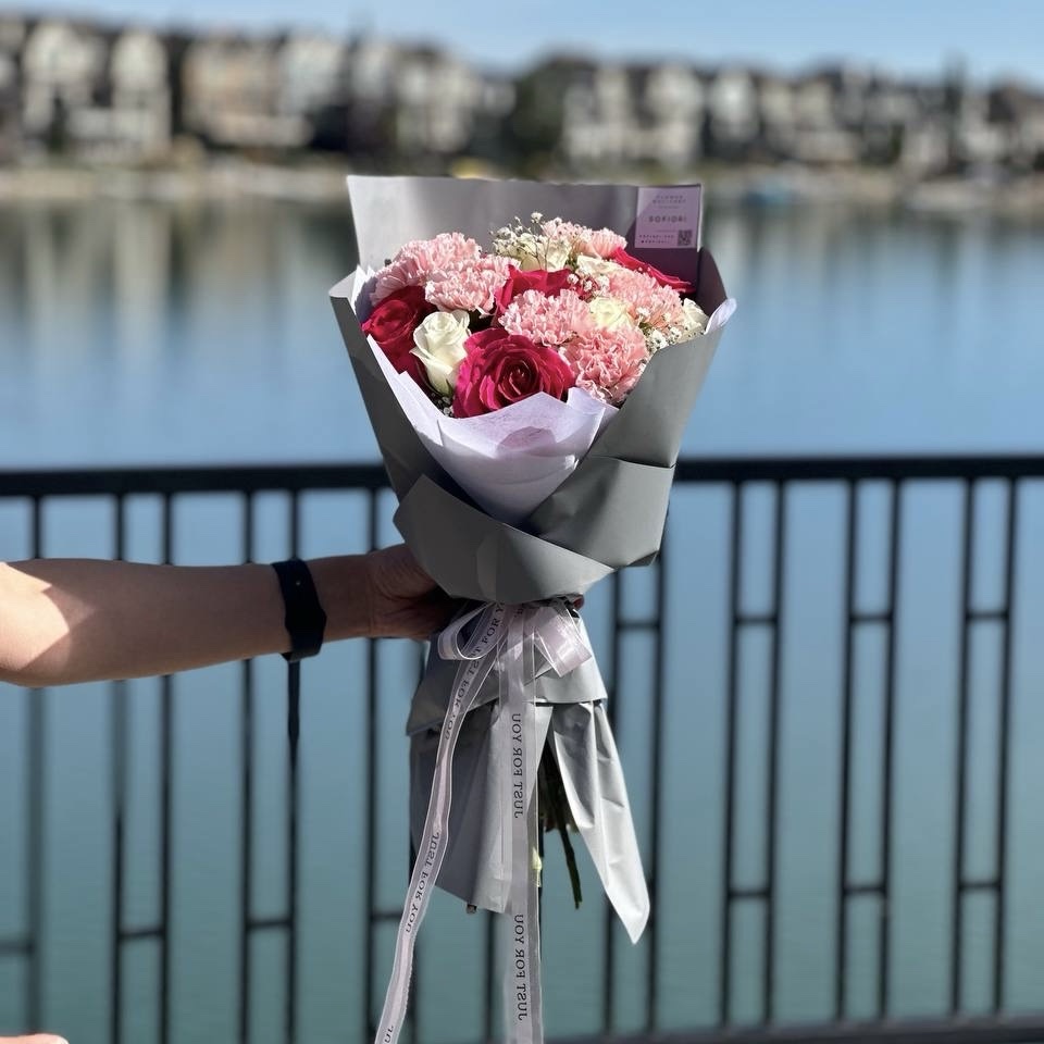 Discover the beauty of our Bouquet with Pink Roses, White Roses, and Carnations, a stunning floral arrangement that embodies elegance and grace. This exquisite bouquet features vibrant pink roses, symbolizing admiration and love, complemented by pure white roses that represent purity and innocence. The addition of delicate carnations adds a touch of charm and warmth, making this bouquet perfect for any occasion.